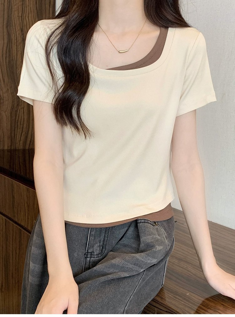 フェイクレイヤード半袖Tシャツ女性用